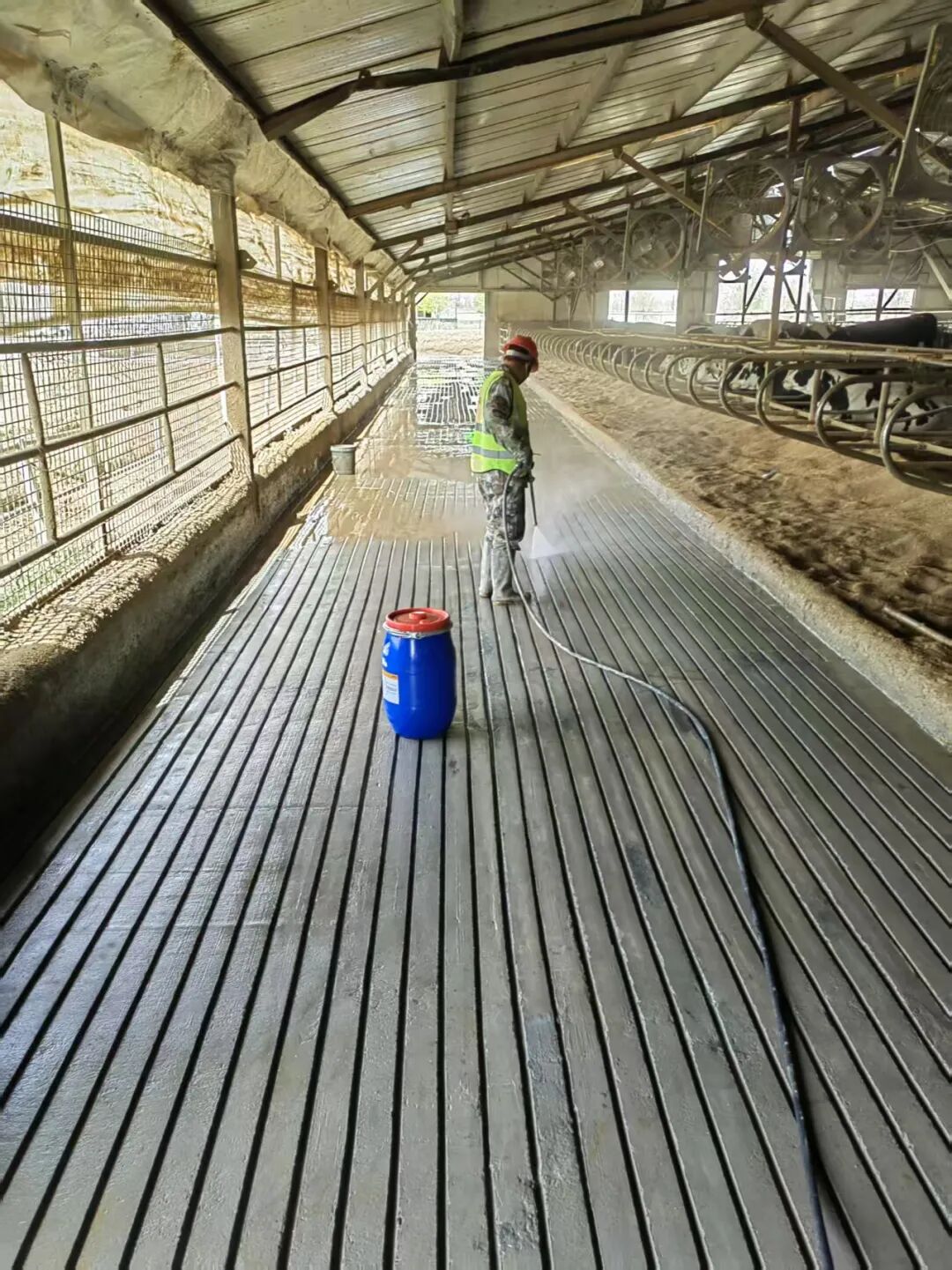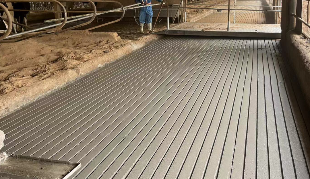 长期以来,混凝土地面起砂、空鼓、脱层、破损等问题不仅影响牛群健康,更增加了运营成本与环保压力。此次合作,双方聚焦粪道与挤奶通道这类高磨损、高机械重压、高腐蚀区域,通过材料创新实现结构性能与使用寿命的全面提升。